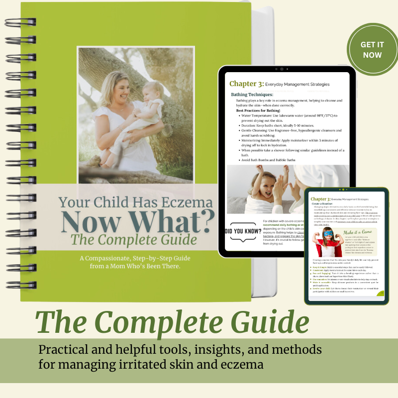 We've created a complete roadmap to managing eczema with our Comprehensive Guide. This in-depth digital resource covers everything from diagnosis and treatment options to dietary changes, skincare routines, and home environment tweaks. Created by a parent who truly understands the journey, this guide empowers you with expert insights and actionable strategies for long-term, sustainable skin care.